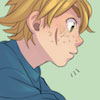 As you wander deeper between the crumbling buildings you almost walk face-first into a boy with ruffled blonde hair, carrying a staff in both hands.