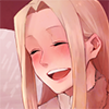Her cheeks reddening slightly, she laughs and leans forward to kiss you lightly.